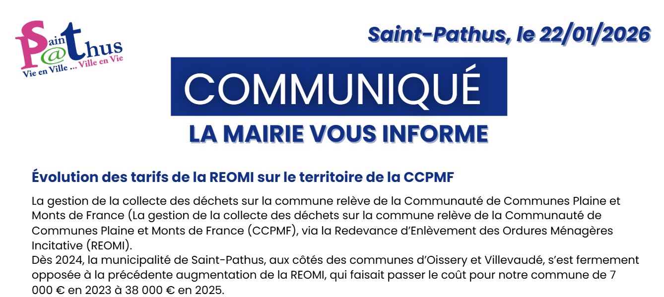 COMMUNIQUÉ – LA MAIRIE VOUS INFORME :Evolution des tarifs de la REOMI sur le territoire de la CCPMF La gestion de la collecte des déchets