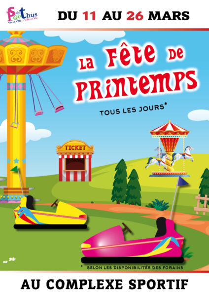 La Fête de printemps revient du samedi 11 au dimanche 26 mars 2023 ! L’occasion de retrouver les nombreux manèges et stands de confiseries dans une ambiance de fête foraine à Saint-Pathus.