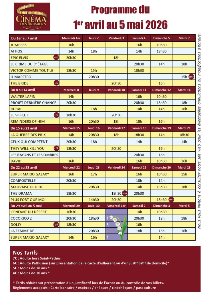 Achat des places directement en ligne : www.cinéma-des-brumiers.fr