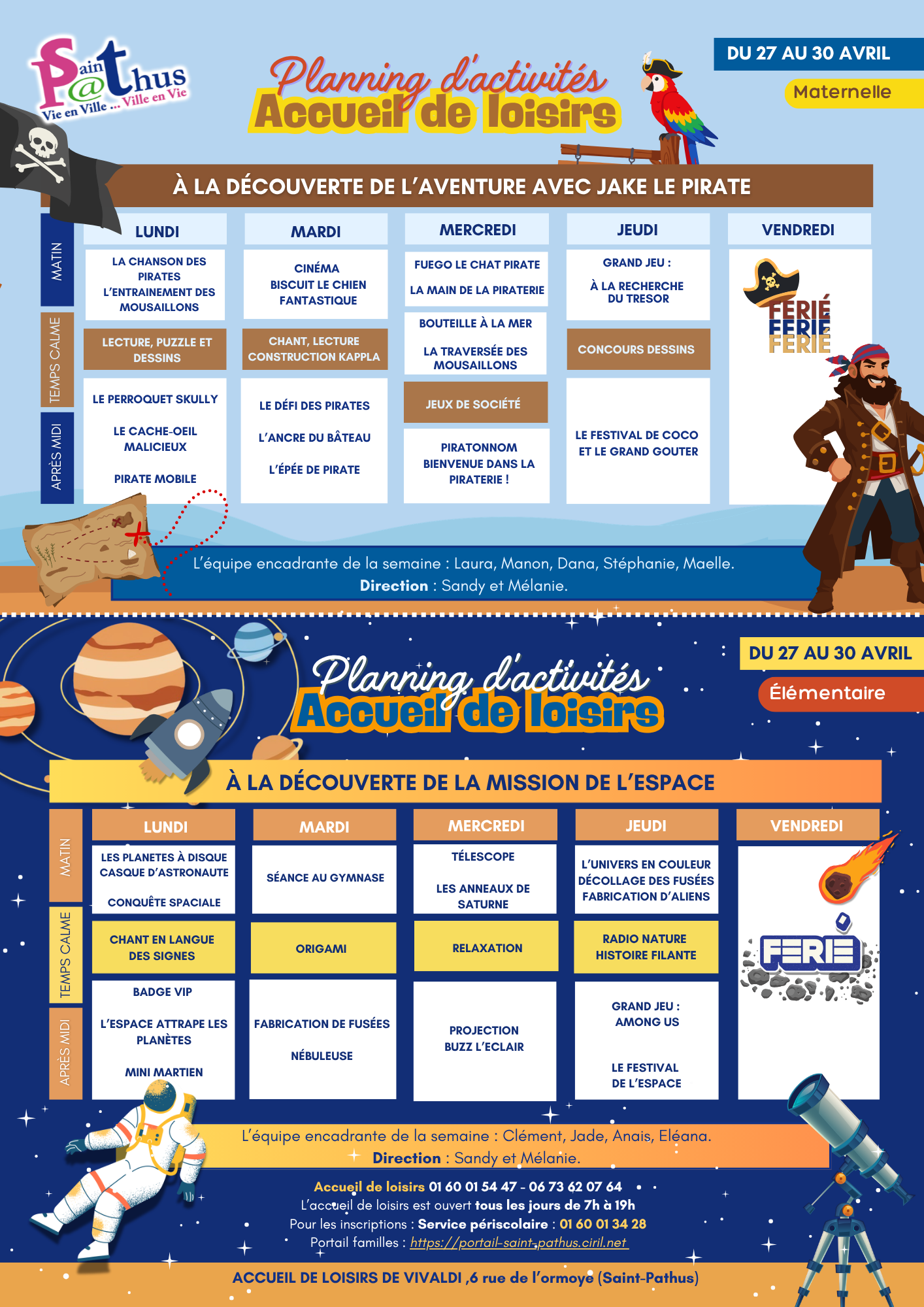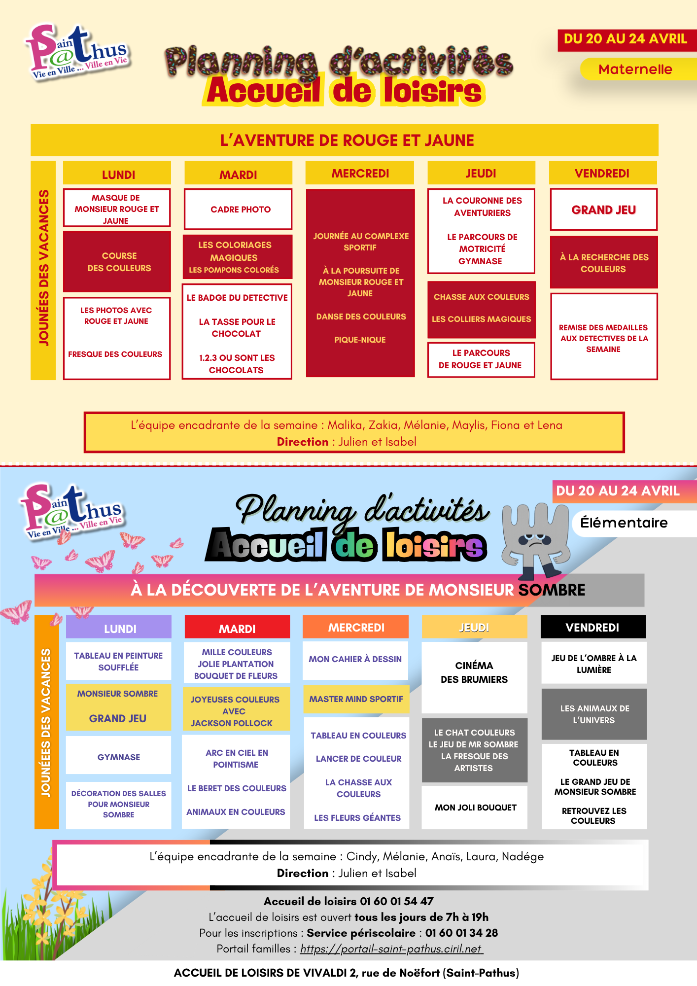 Les plannings de l’Accueil de Loisirs